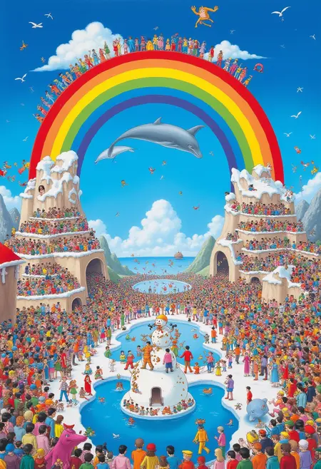 Wanted to see what would happen if I trained a model with equal parts Hieronymus Bosch paintings and Where's Waldo art...something very weird and awesome! Bosch definitely won over Waldo during the training...but I like what's coming out. Trained in base ponyxl should work with anything. Used Pony realism checkpoint for the examples. Enjoy! Now trained for Flux too!