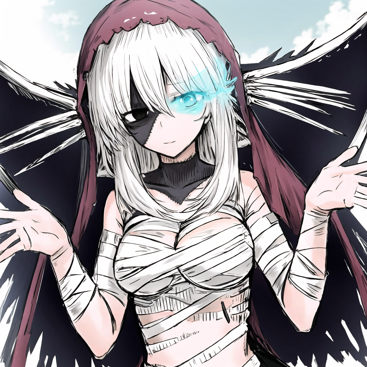 トリガー:ゲームCG、公式アート、公式アートスタイル、ジャバウォック、ブラックソウルズ、包帯。