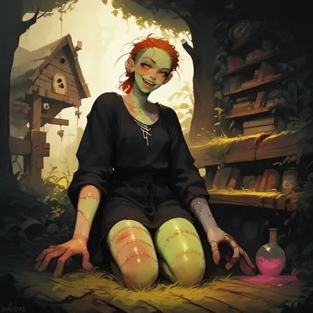 *You can for "white skin" instead of "green skin", it's a special gift i hide inside the lora for people who read description ;) Not so much trained but can give you very interesting look.