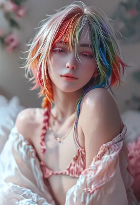무지개색 머리카락을 가진 예술적인 펨보이 모델을 생성합니다. 저는 이를 '보헤미안'이라고 이름붙였는데, 이름이 필요했기 때문이며 특정 민족이나 문화와 반드시 연결되지 않습니다.