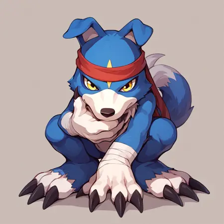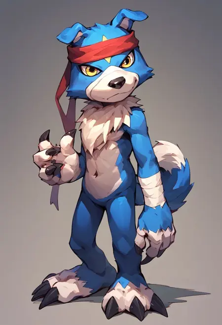 Basic prompts: gaomon (character), digimon (creature), dog boy, blue body