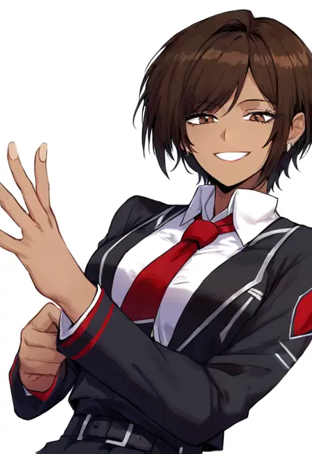 OutisSinner, white shirt, red necktie, black vest, black jacket, belt, black pants, black footwear