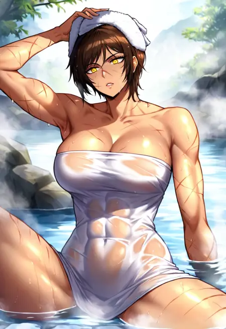 OutisBlade, scars, white shirt, red necktie, black vest, black pants, black footwear, grey kimono