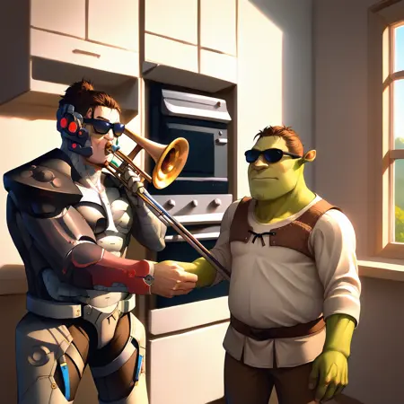 重みは0.9から1.1まで設定可能です。推奨値は1です。ほぼすべてのスタイル、キャラクター、フォトリアルモデルで動作します。画像はリージョナルプロンプトで生成されています。設定は以下に表示されています。一般的なプロンプトを使用する場合は、LoRAの重みを0.4~0.55に減らしてください。楽器の操作は難しいです。