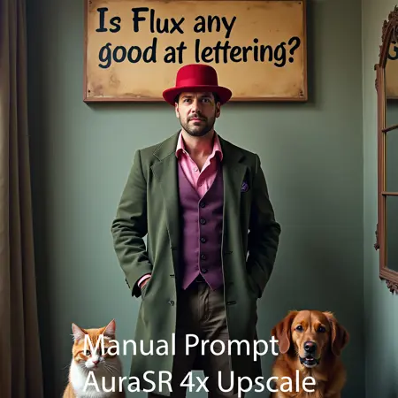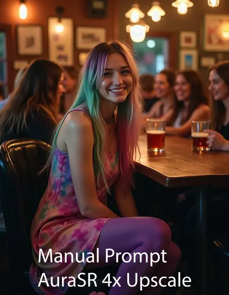 There's then a couple of bright orange nodes (so they're easy to spot), an input switch and a fast group bypasser. These are for choosing the Upscale method, AuraSR (I'm using v2) or UltimateSD. Set the switch to 1 and turn off the UltimateSD group to use AuraSR and vice versa to use UltimateSD. I'm using AuraSD as it takes around 30 seconds and UltimateSD takes around 30 minutes with no real difference in quality. I left UltimateSD in for anyone who likes to tinker but it's switched off by default.