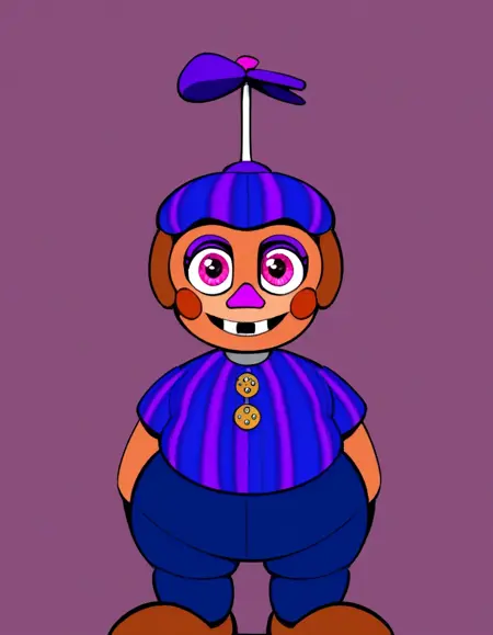 | 학습된 단어 | JJFNAF, shirt, 1girl, hat, striped, pants, magenta eyes, brown footwear, vertical stripes, blue headwear, striped shirt, blue pants, purple headwear, vertical-striped shirt, robot joints, animatronic, fat, chubby, propeller hat, Brown hair복사됨! |