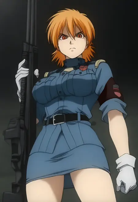 srsvctr, blue military uniform, thighhighs, skirt, white gloves, belt