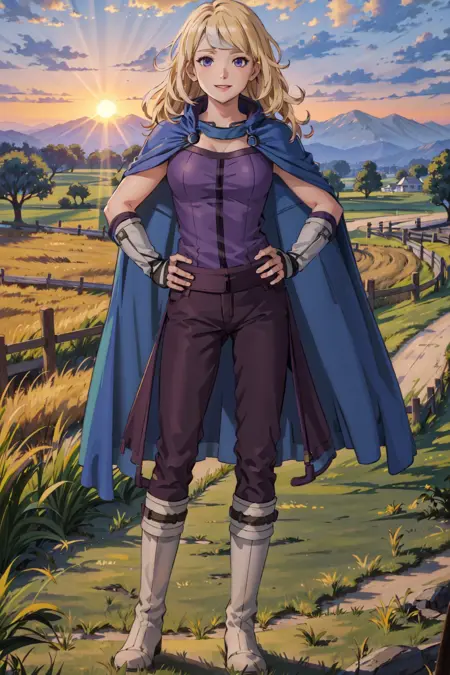 海瑟,来自《光辉黎明》的流浪者,截至本次上传尚未在《英雄》中登场。触发词为“HeatherFE”,权重范围为0.7-1。