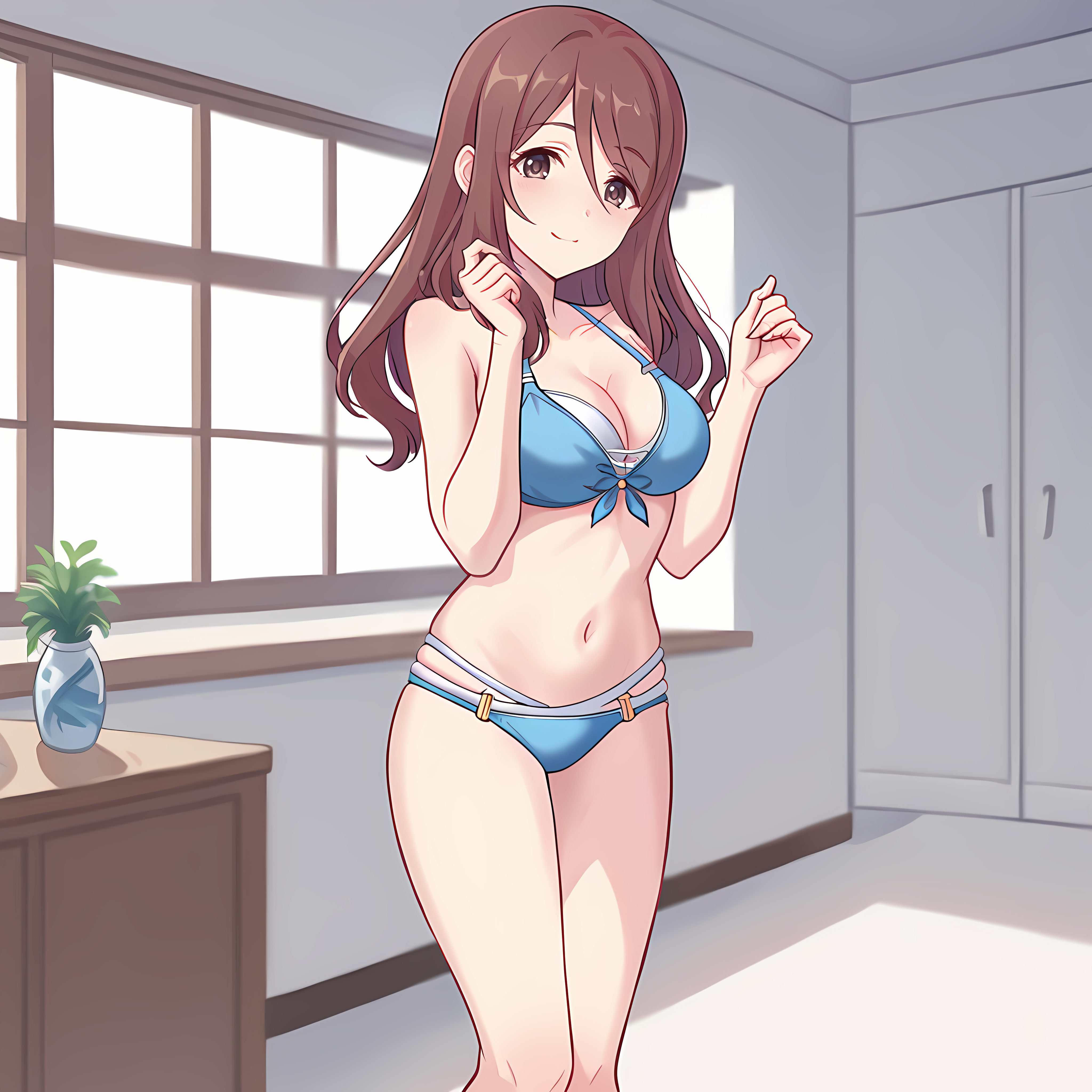 shizuru2, shizblue2 swimsuit, long hair, hands up, brown hair, brown eye,