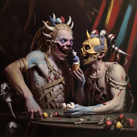 该模型是由卓越独特的 JIM TERUMODE 模型,与我精心微调的模型相结合而成,这种结合使它能良好适配大多数模型,因为训练时就考虑了这一点。该模型对负面提示词极为敏感——请参考我的示例。若不使用负面提示词,模型的表现将完全如同它所能生成的那些怪异生物一般。通过不同组合的负面提示词,你可获得截然不同的结果。触发词:(ohwx aesthetic),搭配 JIM TERUMODE 的触发词:(illustration horror by apterus) (art horror by apterus) (apterus creepy anatomy)。