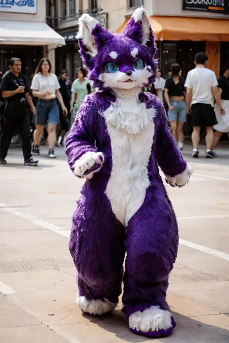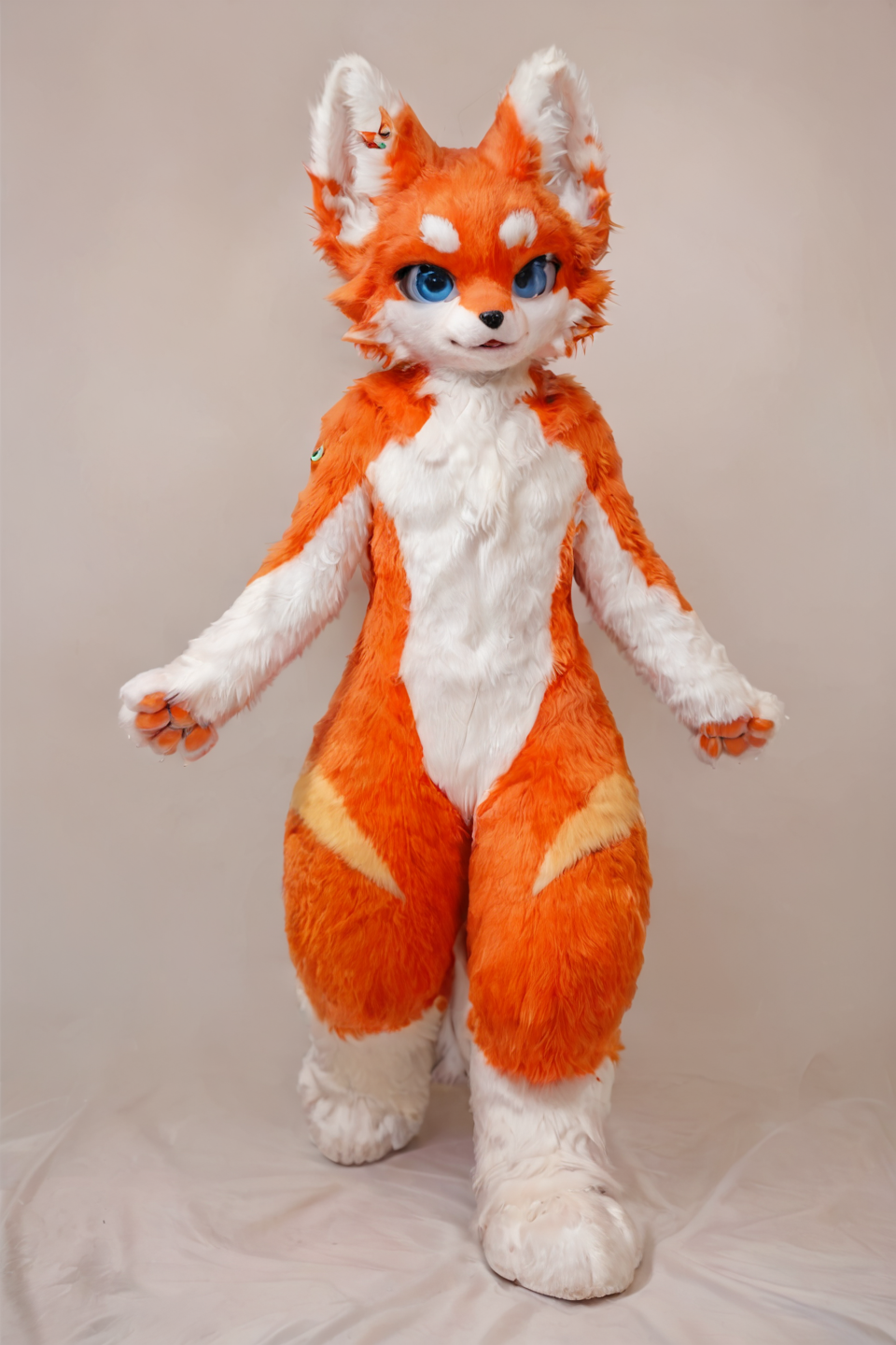 Trigger words:full fur suit, realistic, furry+dog/rabbit/cat/fox/dragon, (colour and colour) fur, furry paws, furry rabbit/fox/dog/cat ears, horns (optional)