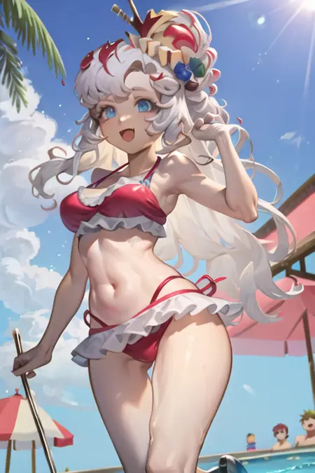 그녀를 소환하려면 crkparfait 를 사용하고, 머리를 형성하려면 파란 눈, 긴 머리, 흰 머리, 여러 색상의 머리카락, 과일, 음식, 음식 주제의 머리 장식 를 사용하세요. 드레스를 소환하려면 드레스, 손목을 넘는 소매 를 사용하면 됩니다...라고 할 수 있겠네요.