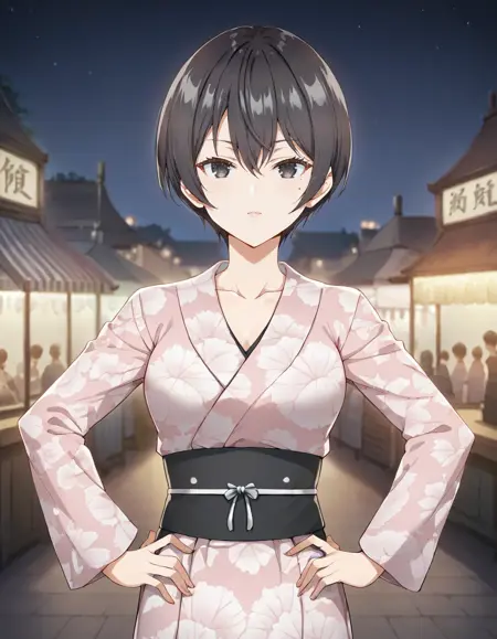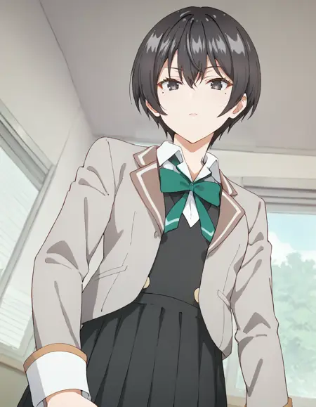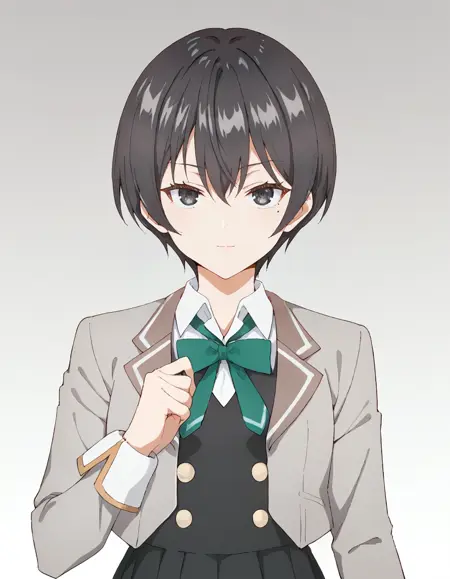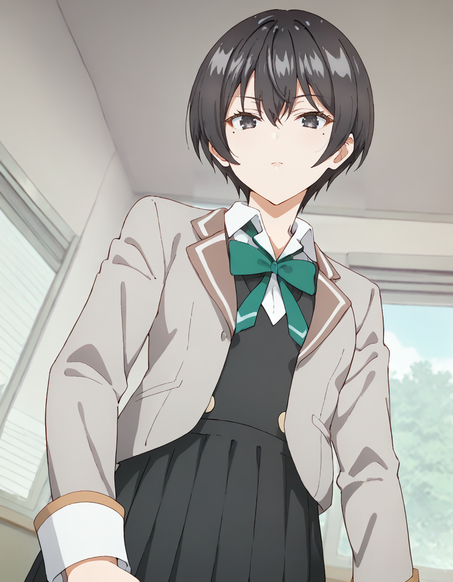 chisaki sarashina, 黑色头发, 短发, 发丝遮眼, 黑色眼睛, (眼下痣:0.7)