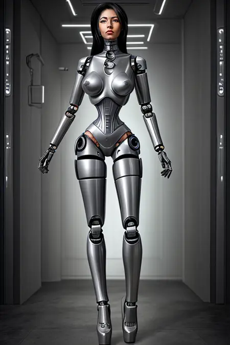 this checkpoint is trained on a set of high quality custom generations out of SD 1.5 featuring a 1980s cyberpunk chrome book style like female cyborg character In different variations