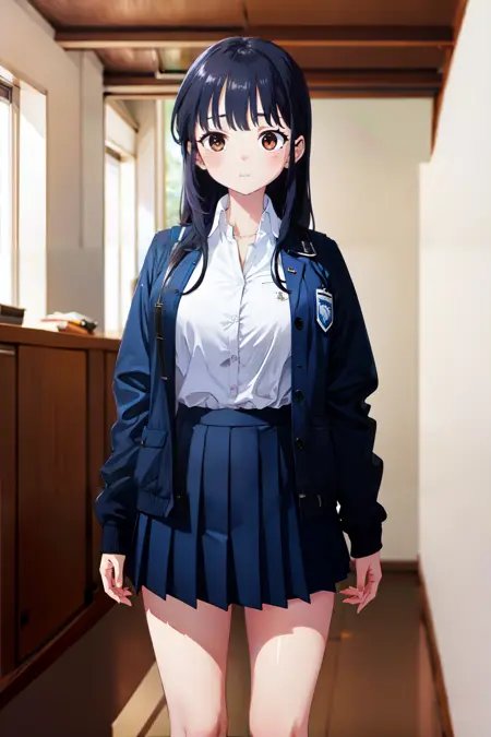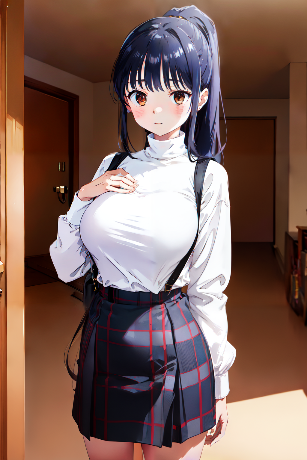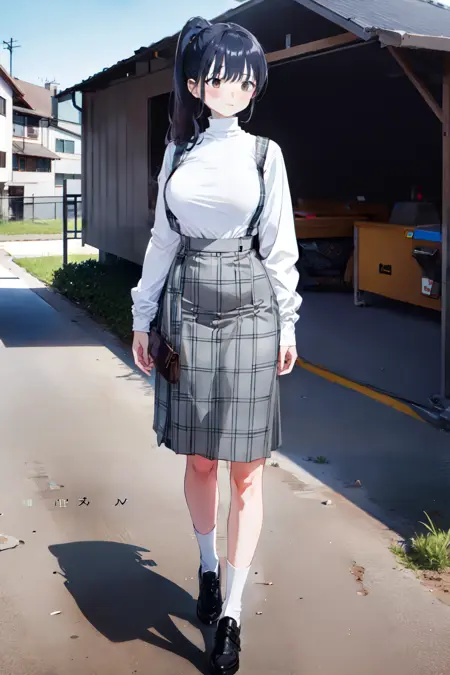 📌提示词:山田安娜,白色立领衬衫,部分解开(部分解開),高领毛衣,黑色百褶裙,格子连衣裙,格子半身裙,花格裙,吊带裙,吊带裤,蓝色夹克,校服,敞开衣领,长袖,高马尾,黑色长靴,过膝袜,白色鞋履,学生室内鞋(uwabaki),西装外套