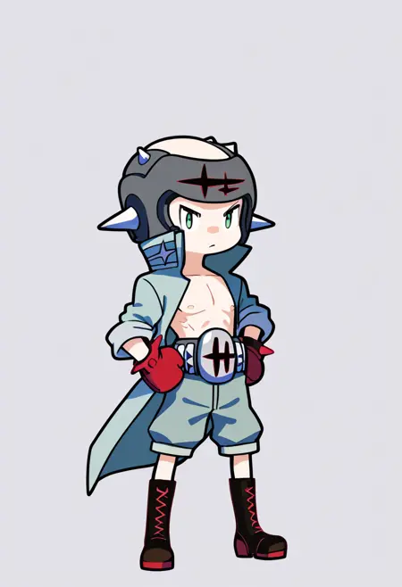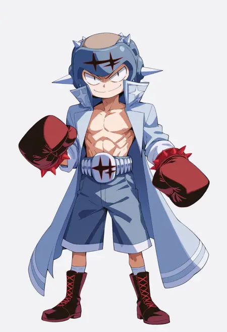 의상 프롬프트: belt, boots, boxing gloves, coat, open clothes, shorts, spikes, helmet