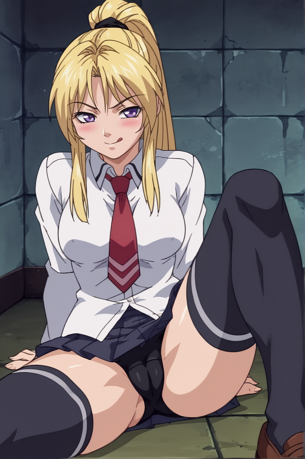 [School Uniform: necktie, black thighhighs, school uniform, long sleeves, skirt]