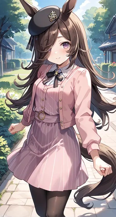 头发遮住一只眼睛,帽子,马耳,马娘,马尾,夹克,长发,长袖,