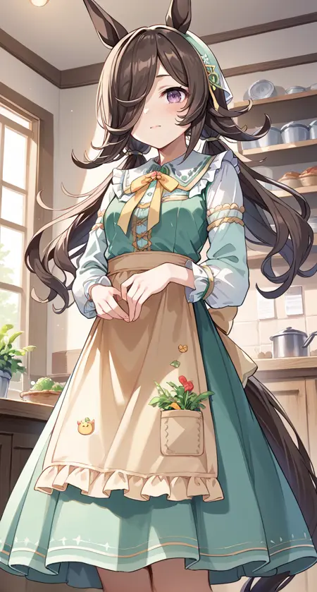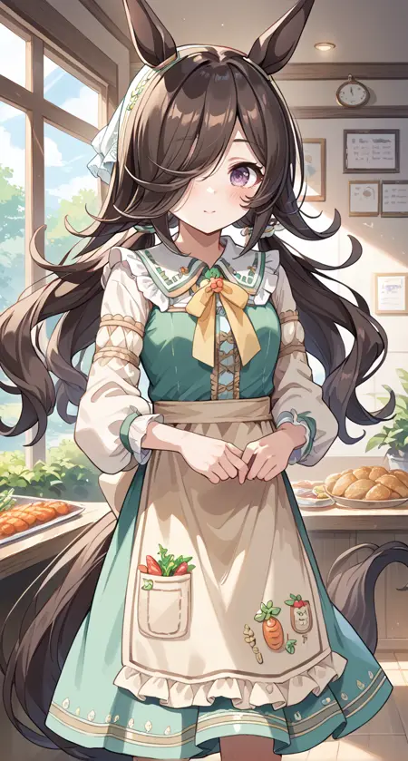 发饰,头发遮住一只眼睛,马耳,马娘,马尾,长发,长袖,