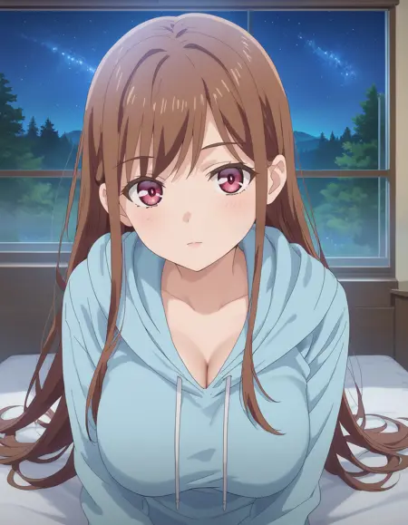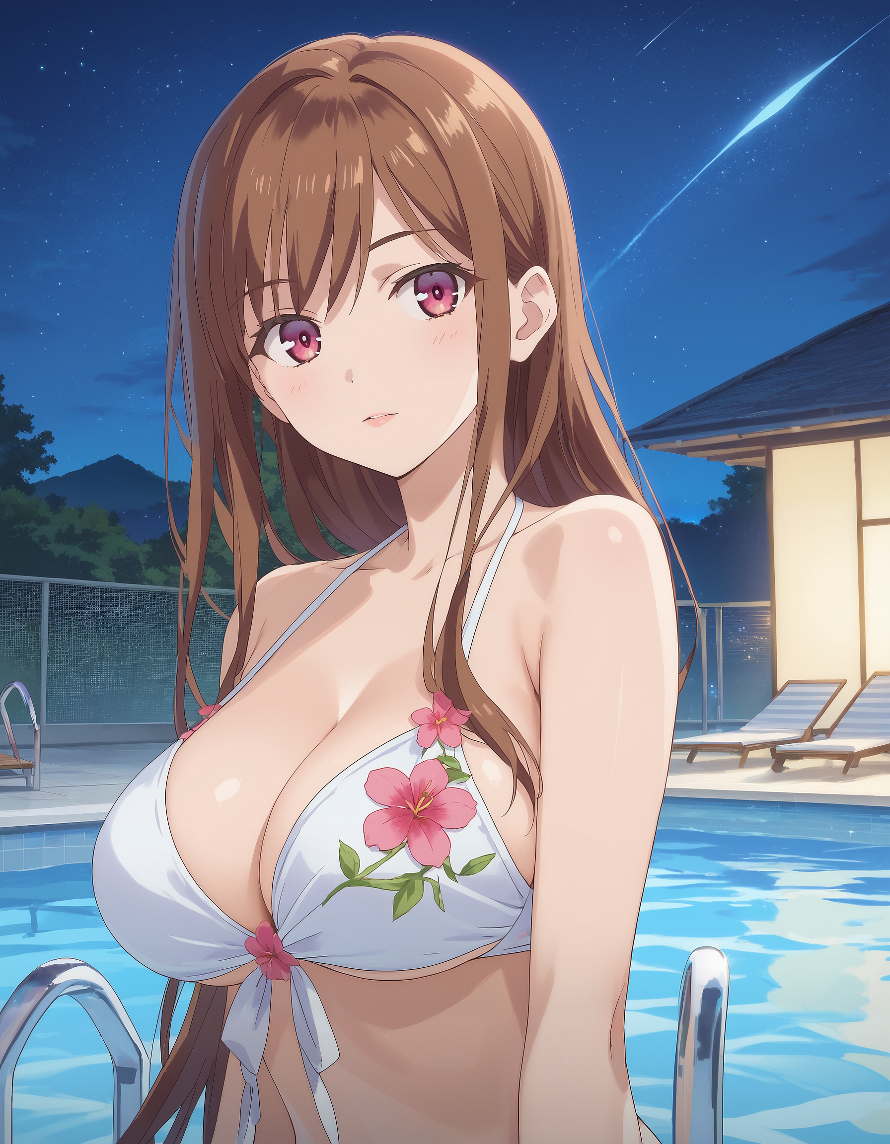 キャラクター: AyaneShirakawa、長い髪、茶色の髪、前髪、ピンクの目、大きな胸