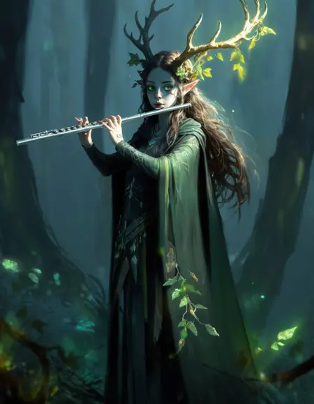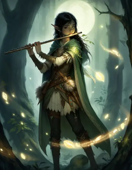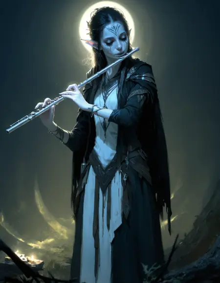 Lora trained to depict characters playing the flute... Great For Bards!!!!!