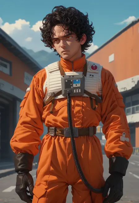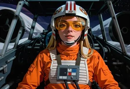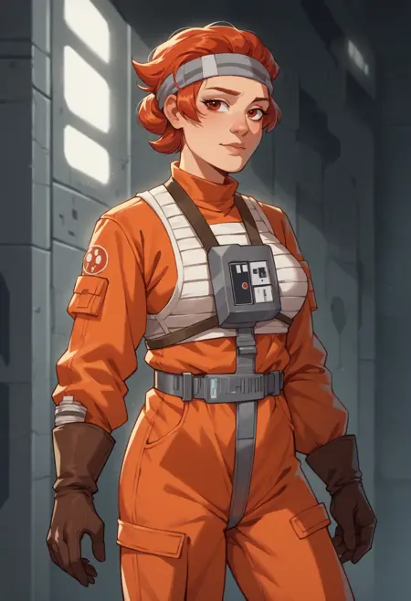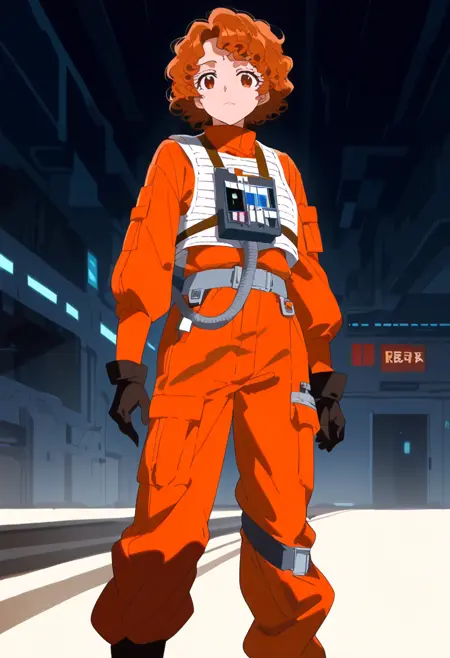 트리거는 "rebelpilotsuit"이며, 때로는 "주황색 바지", "주황색 셔츠" 또는 "흰색 조끼"를 추가하면 도움이 됩니다.