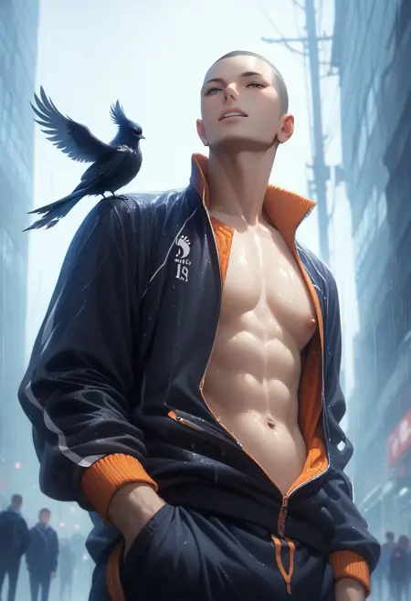 Tanaikyu, 1boy, male focus, anime screencap, grey eyes, black buzz cut