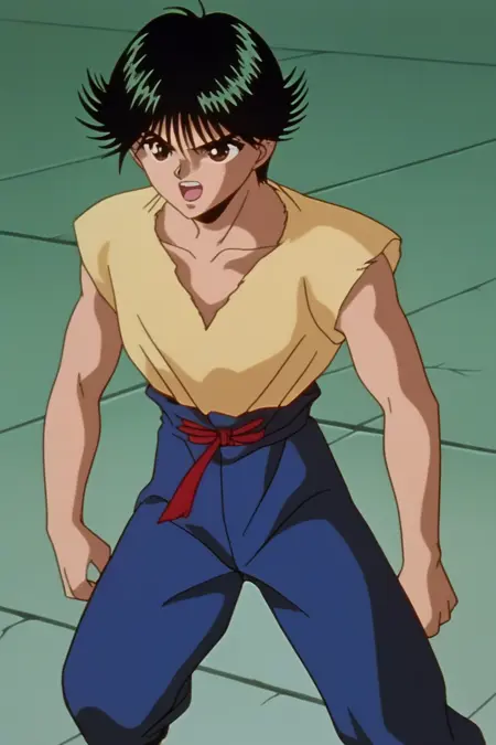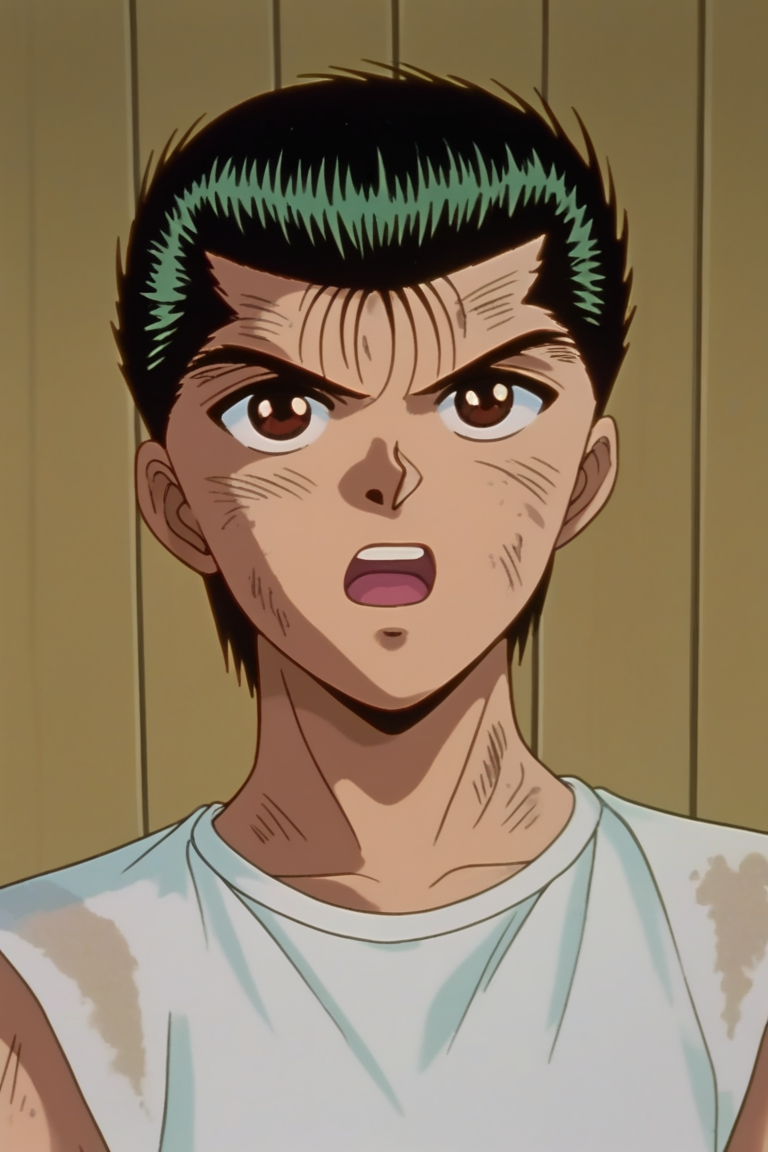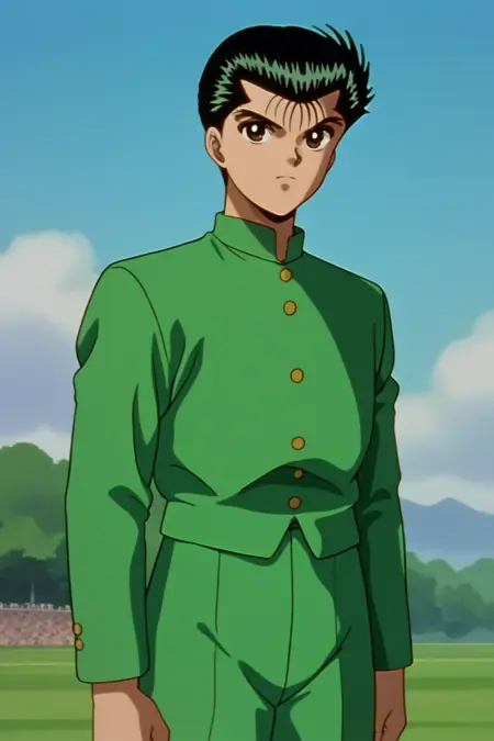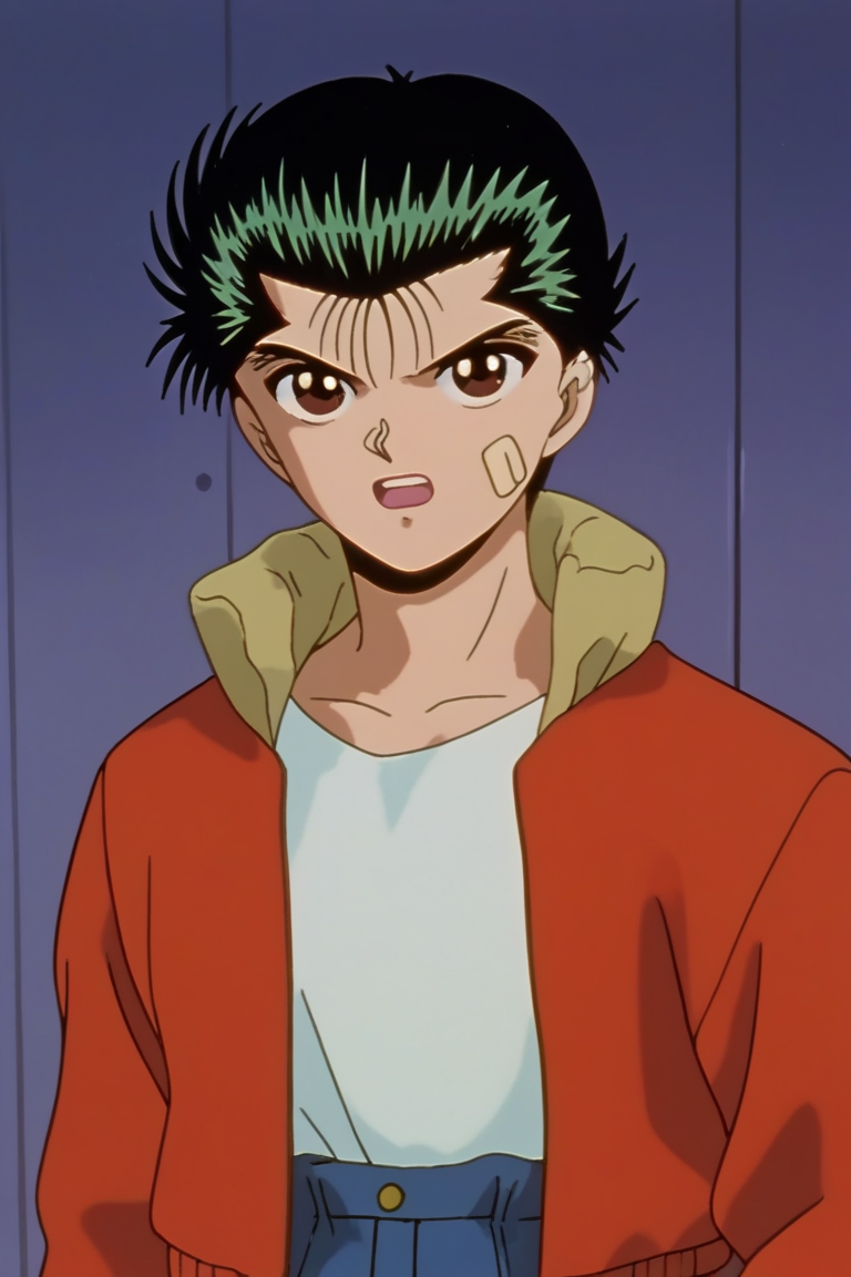 Yusuke_Urameshi_ep, green hair, brown eyes,