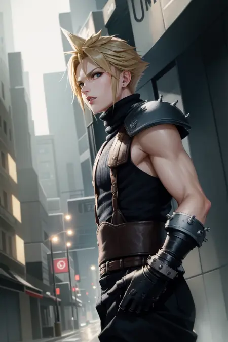 ファイナルファンタジーVII(リメイク)のクラウド・ストライフ。NAIでトレーニング済み。