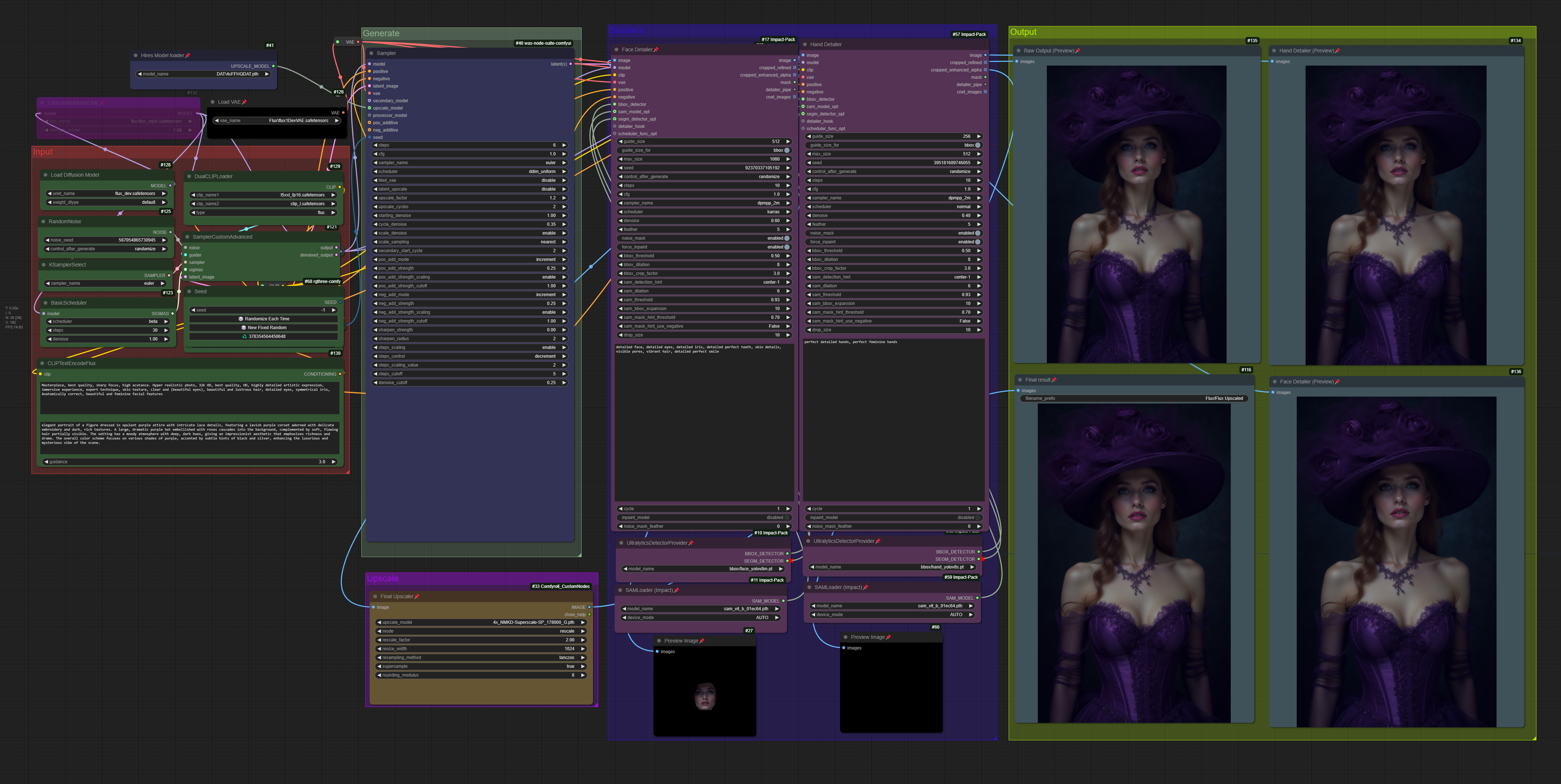 Flux Schnell(およびdev)用のシンプルなワークフロー。2つの別々のデティーラーと2つの別々のアップスケーラーを含みます。