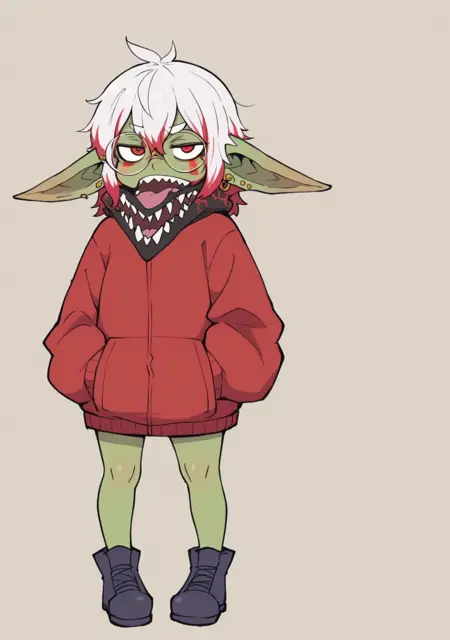将你的角色变为哥布林。此模型主要使用女性角色进行训练,因此可能不适合男性角色。