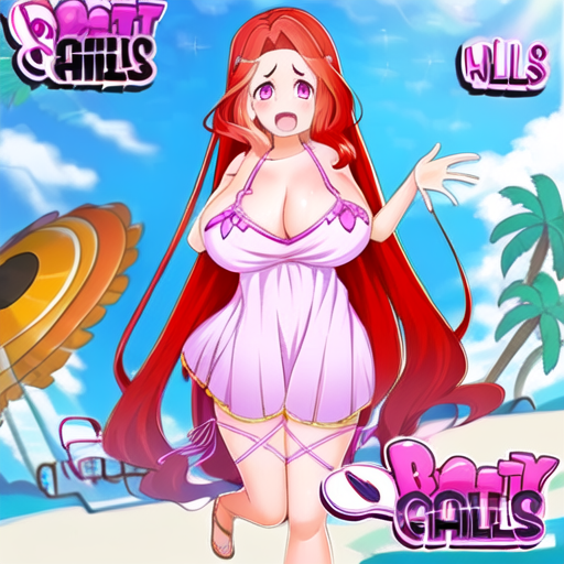 AndriellaBC, 1girl, solo, long hair, breasts, large breasts, dress, very long hair, red hair, pink eyes, symbol-shaped pupils, heart-shaped pupils, sandals