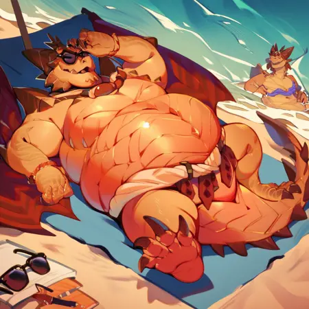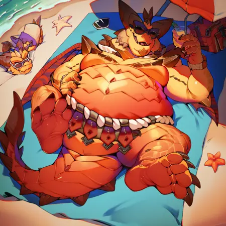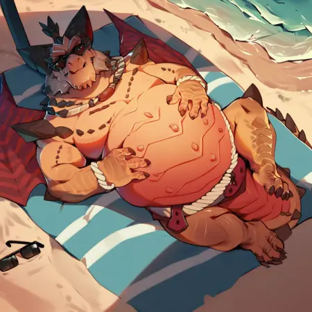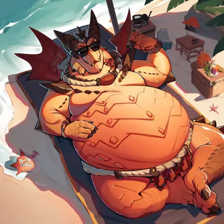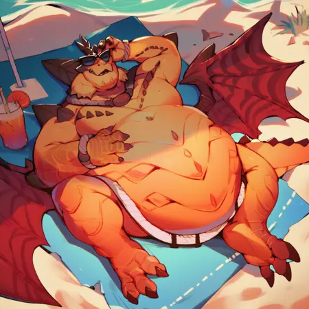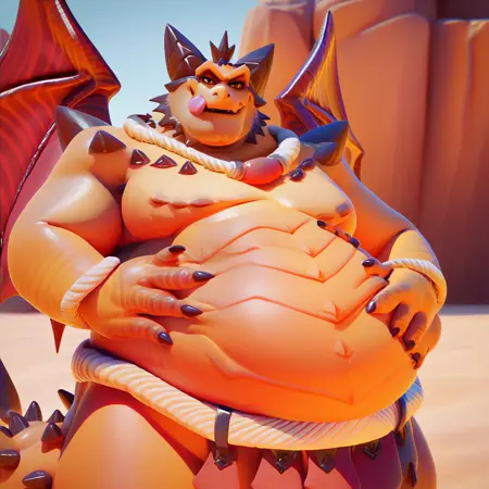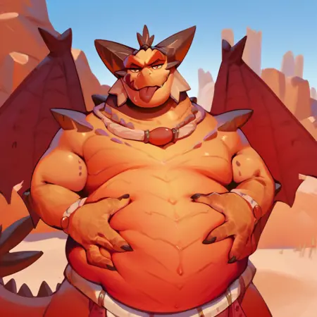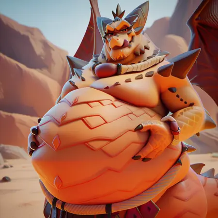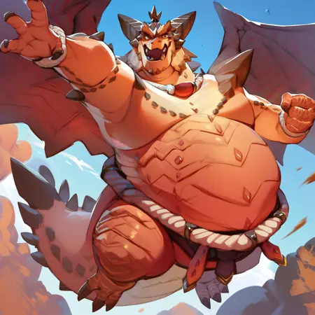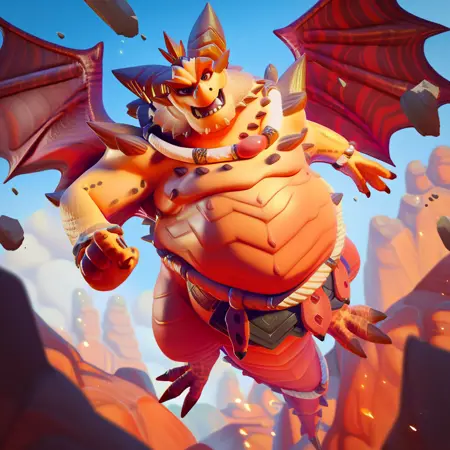최고의 긍정 입력: (magnus, dragon, fat, orange skin, spikes, red wings, belt)