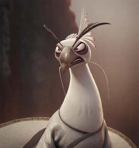 ロード・シェン:アルビノの孔雀で、映画の主要な反派。彼は、恭明という都市を治めていた孔雀の王と王妃の唯一の息子である。