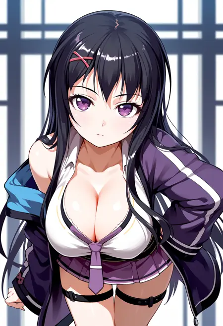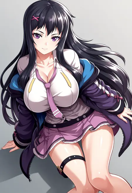 검은 머리, 긴 머리, 보라색 눈, 큰 가슴, (외모용)