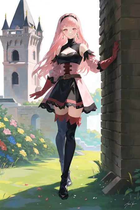 화염의 제국 삼국의 가장 좋아하는 캐릭터/로맨스. 특정 루트를 선택했을 때 '무엇인가' 일어나는 걸 기억합니다. 가족에 다시 복귀시키고 유지하려면 크래프트 코드를 사용해야 했죠. 어쨌든, 이 LoRA는 제 최신 티파 LoRA와 마찬가지로 모든 의상을 지원하며, 물론 적절한 프롬프트 입력이 필요합니다. 정확도를 높이려면 무게를 약 0.7 정도로 설정하세요. 트리거는 hilda valentine goneril에다가 여름옷과 겨울옷의 설명어 및 옷 이름을 추가하면 됩니다 (예: hilda valentine goneril (summer)). 예시를 확인해 보시면 어떻게 모든 의상을 얻었는지 알 수 있습니다. 다만 여름옷은 예시가 약 4개뿐이라 얻기 매우 어렵습니다 (프롬프트는 90% 정도 정확했고, 프릴의 색상이 정확하도록 디테일 보정을 추가했습니다). 시간이 흐른 후의 의상은 가장 쉽게 완벽하게 얻을 수 있습니다. 사용한 모델은 AOM2, AnyLoRA, AnyPastel입니다.