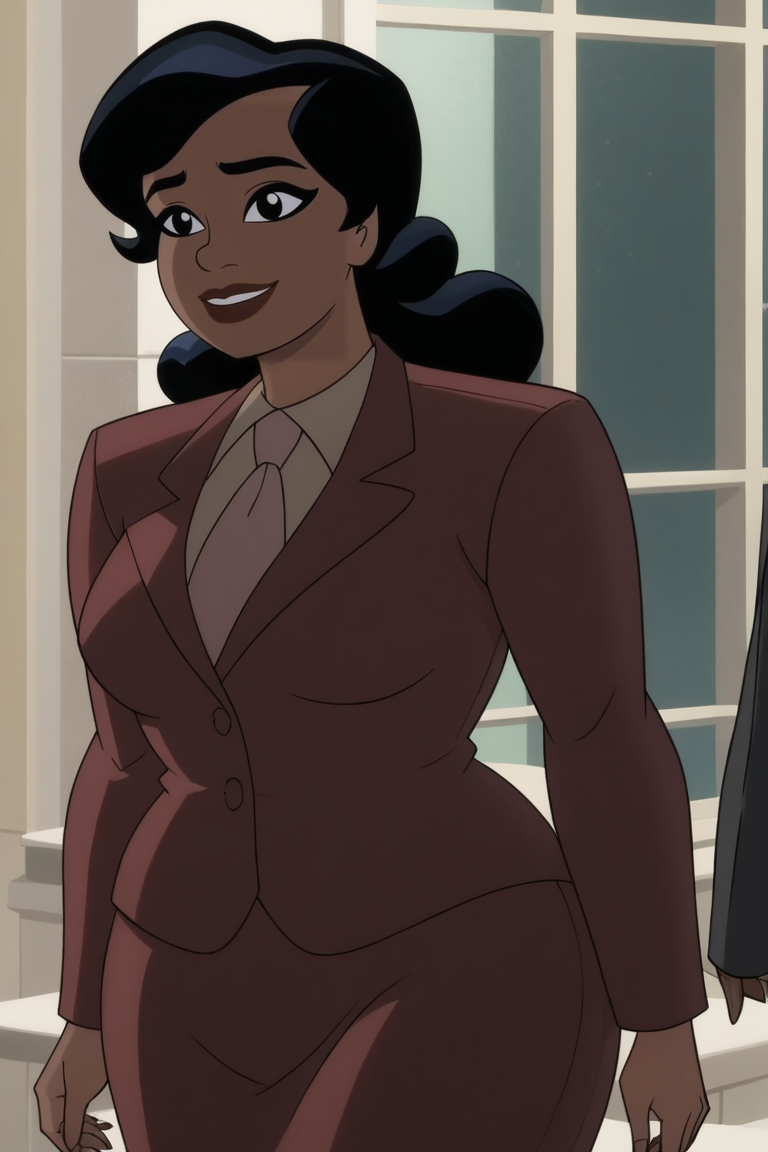 레nee 몬토야: Renee_Monto, 여성, 곡선형 여성, 검은 머리, 머리 묶음, 검은 눈, 검은 피부 여성, 정장, 넥타이