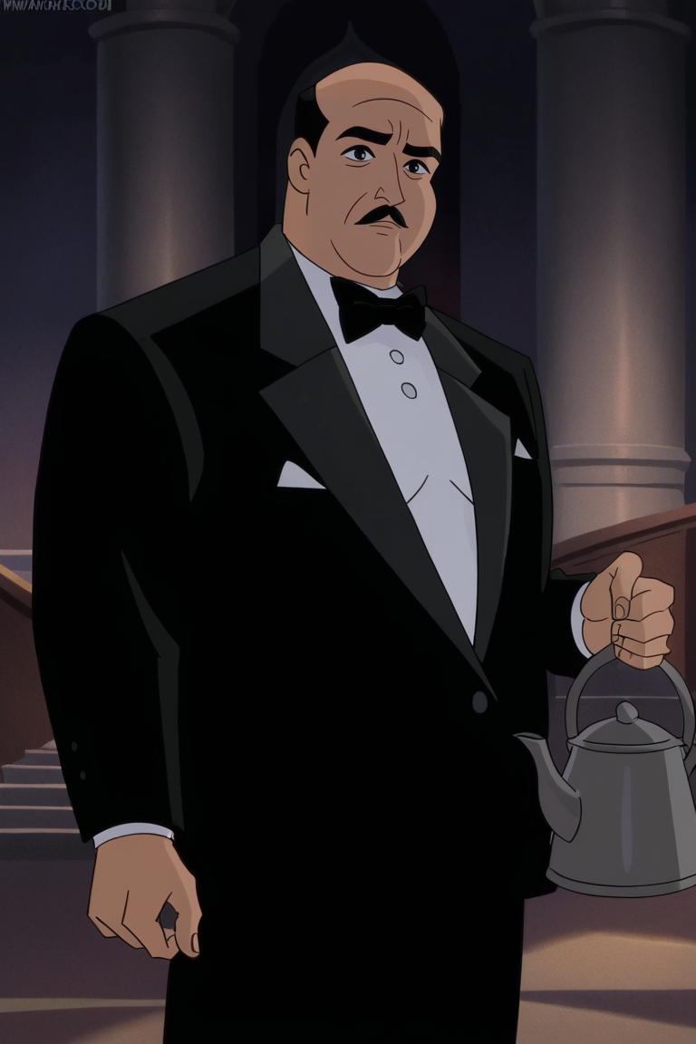 알프레드: Alfred_Penny, 1boy, 남성, 셔츠, 넥타이, 검은 눈, 수염, 정장, 정장, 수염