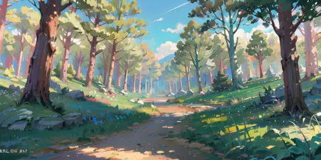 grass, tree, bush, nature, forest, scenery, outdoors, day, path, no_humans, on_grass, tree_shade, plant, sky, tree_stump, road, jungle, blue_sky, under_tree, field, foliage, garden
