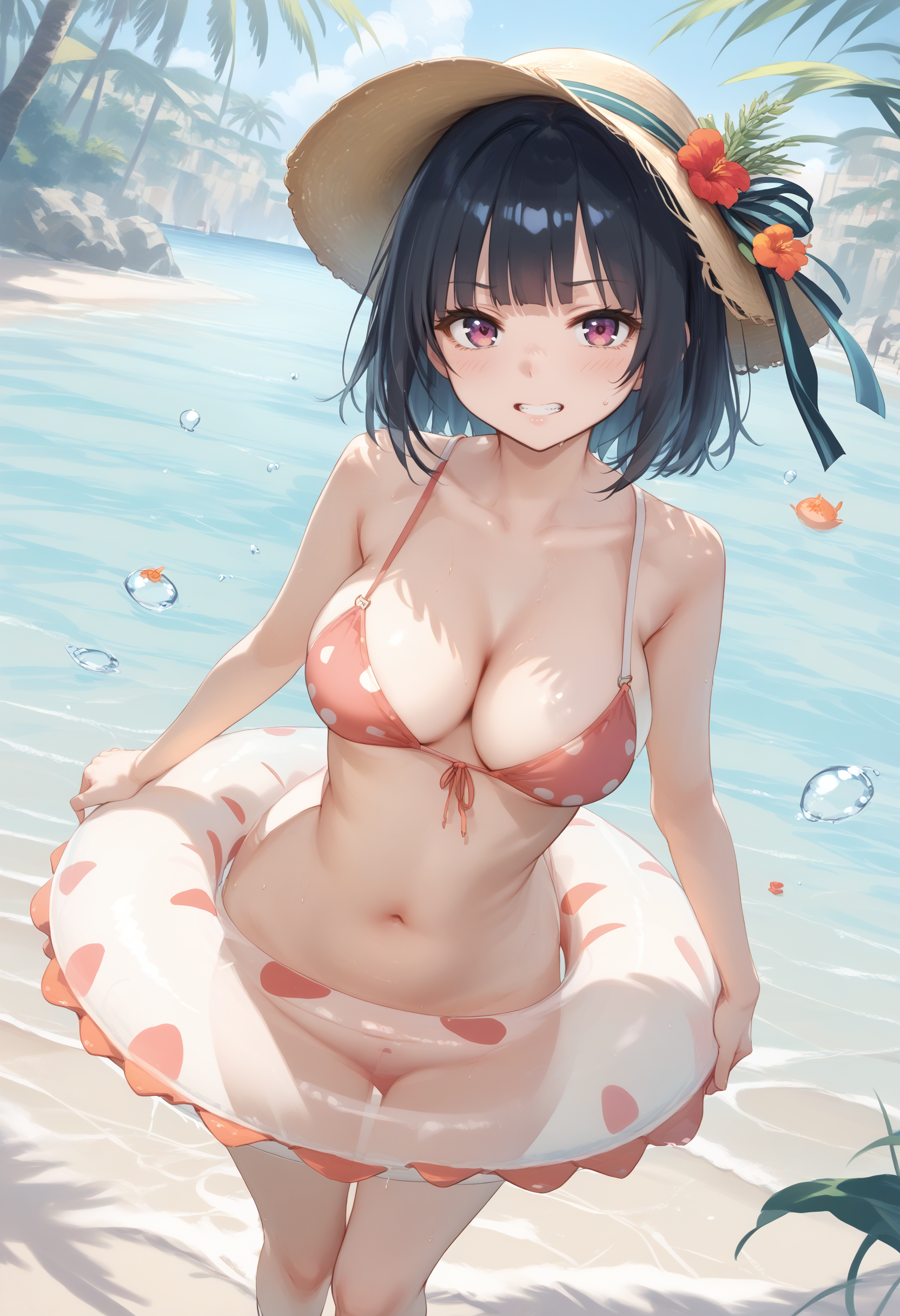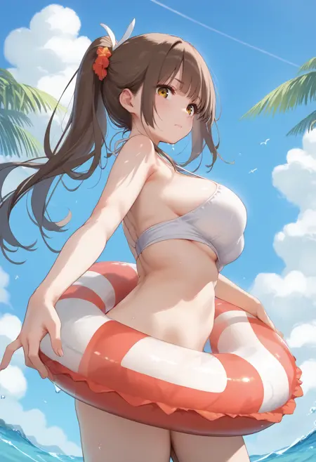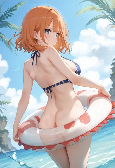 除了触发词外,加入“swim ring”、“holding swim ring”等词可能会使效果更真实。