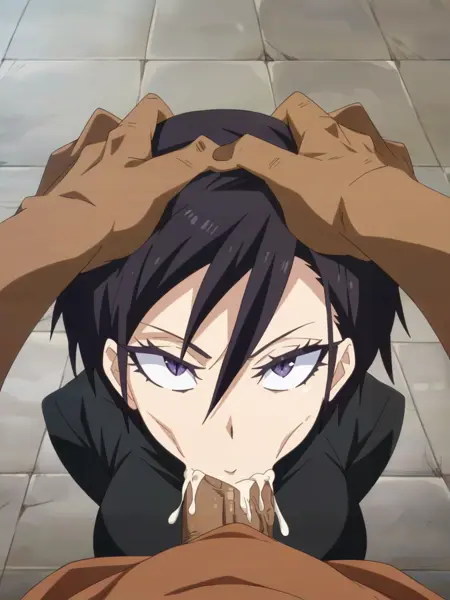 Recommend prompt: "h_ta, 1girl, pale skin, black hair, short hair, purple eyes, long eyelashes"