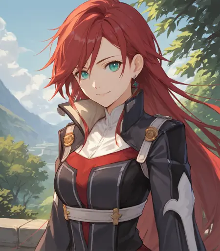 <lora:CelisOrtesia:0.9>, Celis Ortesia, 红发, 长发, 两侧发束垂于肩部, 水蓝色眼睛, 中等大小胸部, 耳环, 戒甲连衣裙, 长裙, 腰带, 黑色连裤袜, 黑色靴子, 系带鞋履, 无指手套,