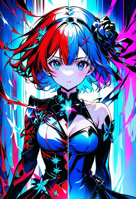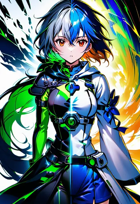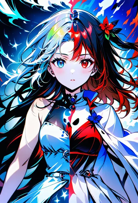 キャラクターの顔、服、翼、アクセサリーなどを適切な遷移で二つの部分に分割してください。