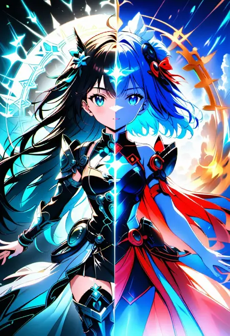 문자 얼굴, 옷, 날개, 액세서리 등을 적절한 전환을 통해 두 부분으로 나누세요.