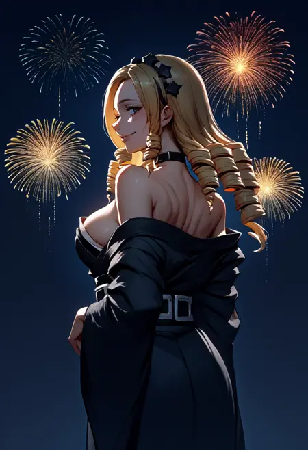 Trigger + Appearance: solutionepsilon, drill hair, ringlets, large breasts