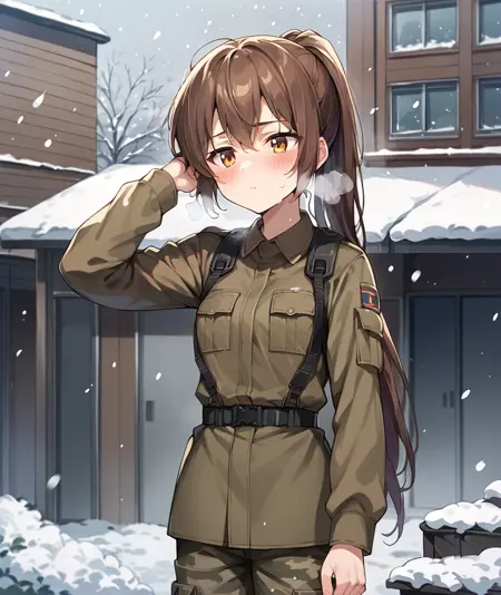 그녀의 가장 상징적인 옷차림은 제대로 학습되었으며, "Military shirt", "Military pants" 등의 프롬프트와 함께 사용할 수 있습니다.