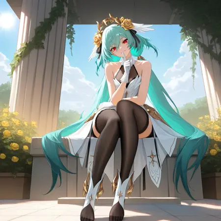 OsrAusAG, Osr_New, 물결 모양 머리, 양쪽 위로 올린 머리, 청록색 헤어, 연한 파란 눈, 긴 머리, 소매 없는 드레스, 대안 흰색 드레스, 검은 고르게, 어깨 노출, 청록색 리본, 팔꿈치 장갑, 발목 날개, 양면 스커트, 허리 캐프, 검은 테두리, 머리 날개, 검은 소매, 양면 장갑, 흰색 허벅지 양말, 허벅지 양말, 웨딩 하의, 검은 게터 스트랩, 분리된 소매, 투명한 가슴, 여러 허벅지 스트랩, 검은 허벅지 스트랩, 흰색 바디스톡, 청록색 발톱,