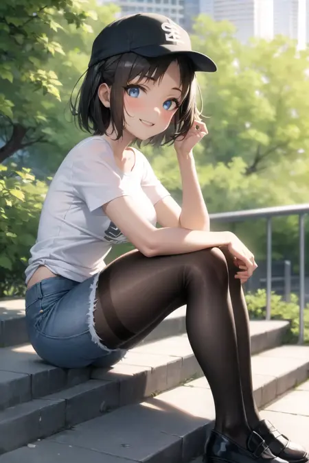 「Ronye Arabel、ショートヘア、ブルーアイズ、RonyeUniform、ロングスリーブ、スクールユニフォーム、グレーのスカート、ブラックのタイツ」