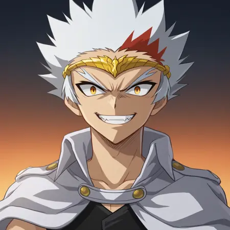 Ryuga, 1boy, solo, white hair, spiked hair, amber eyes,