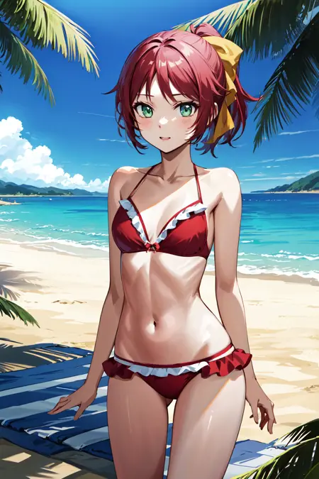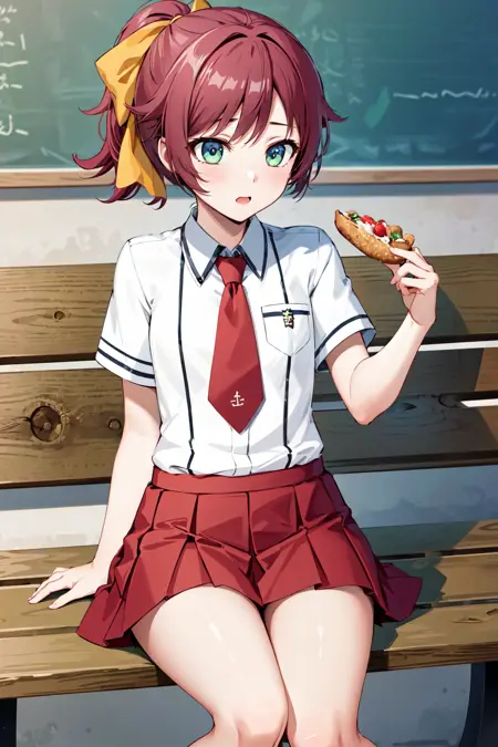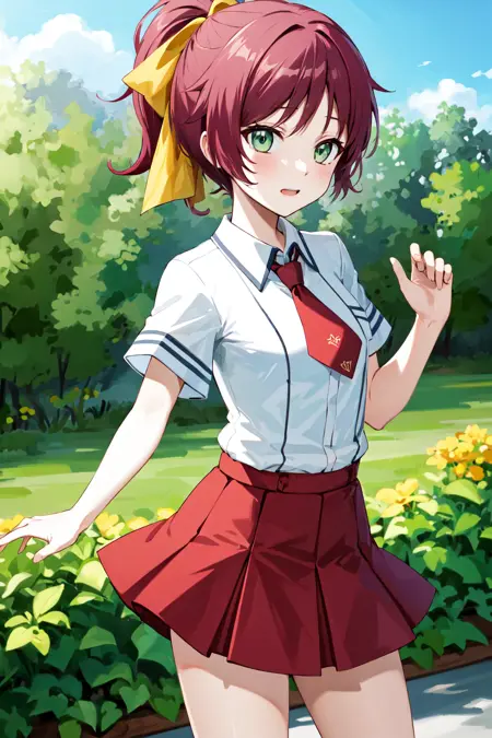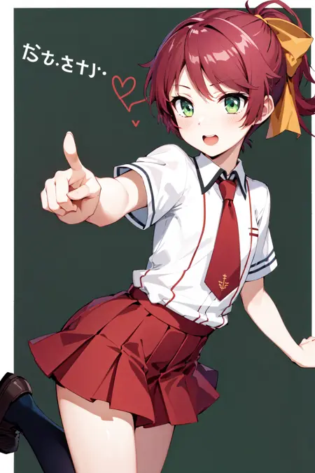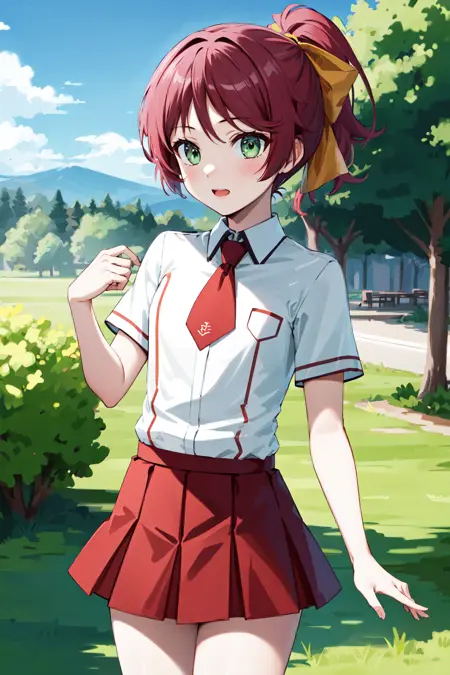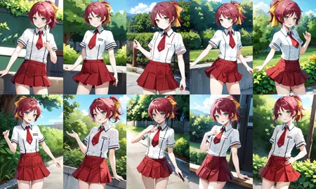 sm1, 学園制服, カラーネクタイ, 赤髪, 髪飾り, スカート, ホワイトシャツ, 短袖